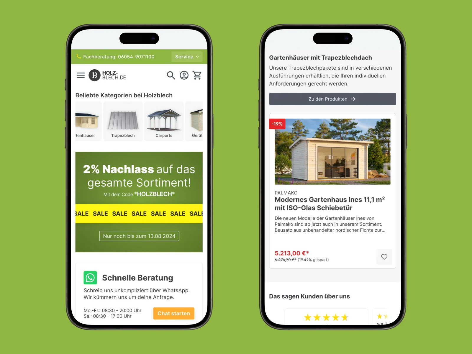 Holz-Blech.de wandte sich 2024 an uns, um ihren Webauftritt zu erneuern und die Performance ihres Online-Shops zu optimieren.